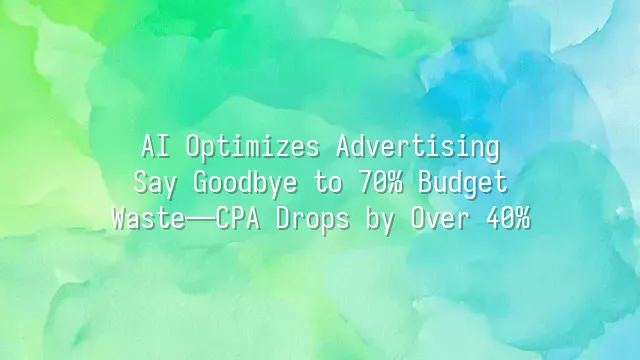 AI Optimizes Advertising: Say Goodbye to 70% Budget Waste—CPA Drops by Over 40%