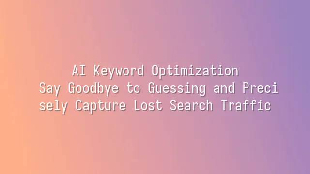 AI Keyword Optimization: Say Goodbye to Guessing and Precisely Capture Lost Search Traffic