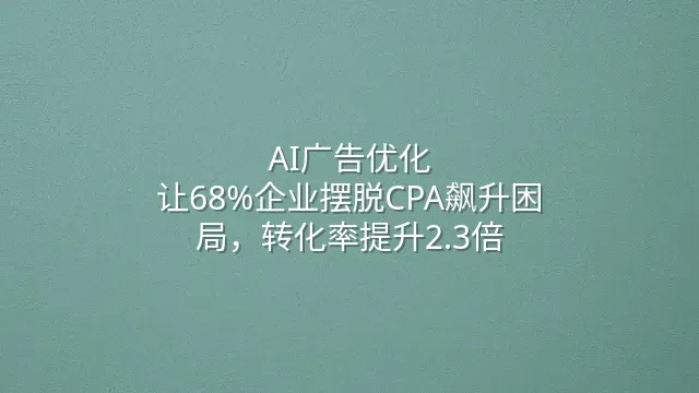 AI广告优化:让68%企业摆脱CPA飙升困局,转化率提升2.3倍