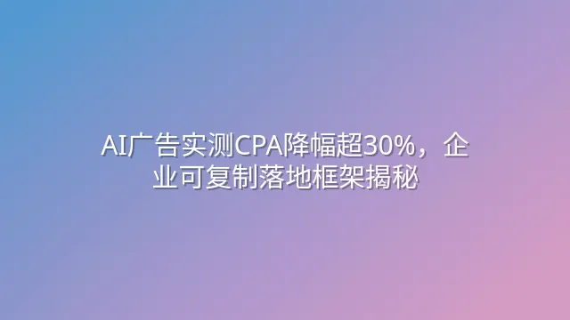 AI广告实测CPA降幅超30%,企业可复制落地框架揭秘
