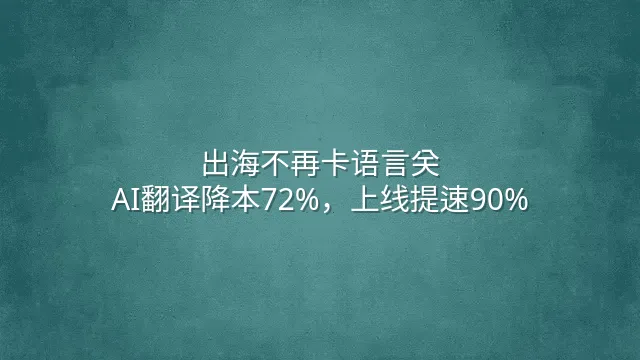 出海不再卡语言关:AI翻译降本72%,上线提速90%